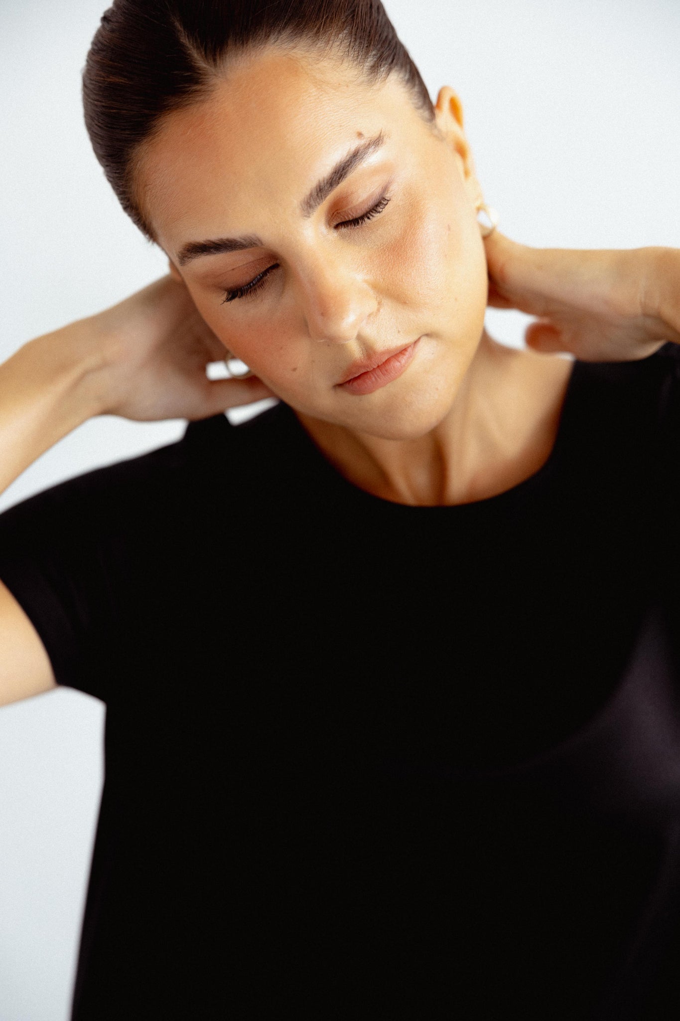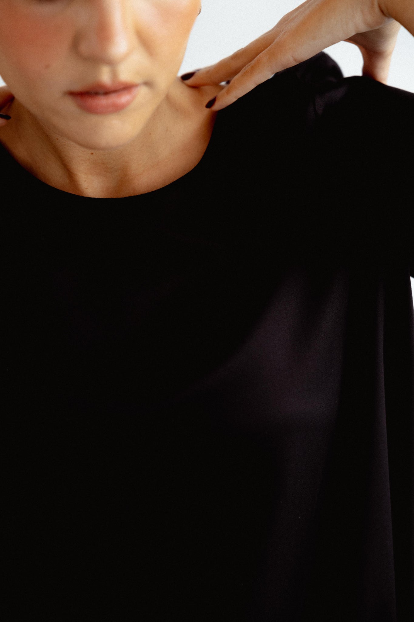 An understated statement: ELIN Dress embodies effortless elegance with its soft silhouette and fluid movement. Minimal in design yet striking in presence, it reflects the essence of modern femininity: simple, refined, timeless.