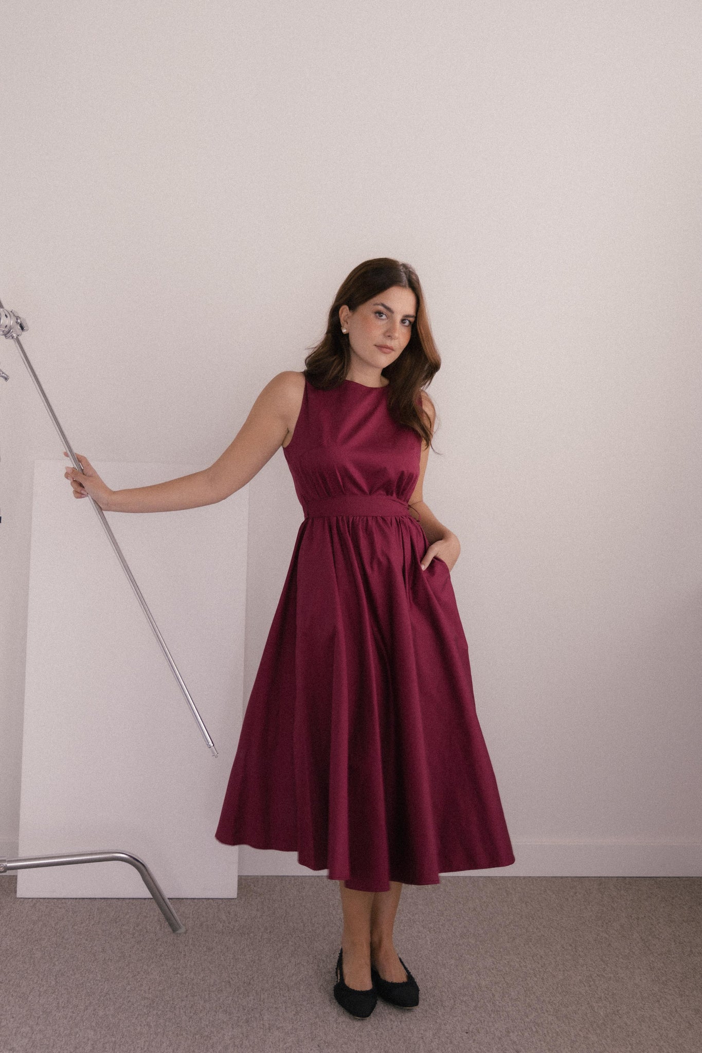 A nod to timeless femininity, the BLAIR Dress captures the spirit of 1950s elegance—poised, powerful, and effortlessly graceful. With its midi length and gently flared skirt, it’s designed to flatter and move with ease, whether you're strolling through the city or stepping into a summer soirée.